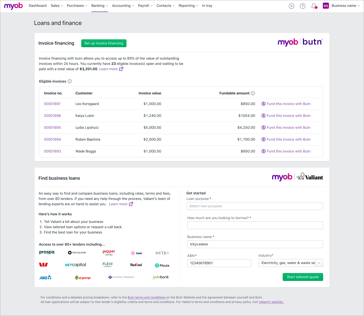 Can't see Butn invoice financing on the Loans and finance hub? Invoice financing is only available to selected Australian businesses.
