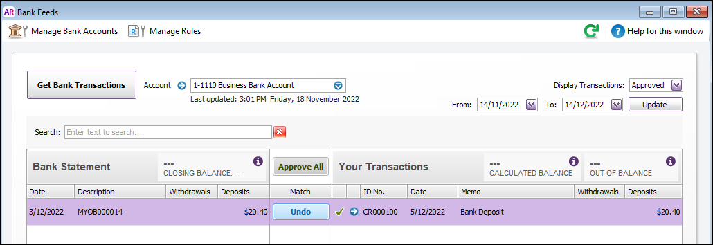 You can use the details in the report, such as the Transaction description, to help you identify online invoice payments in your bank feeds.