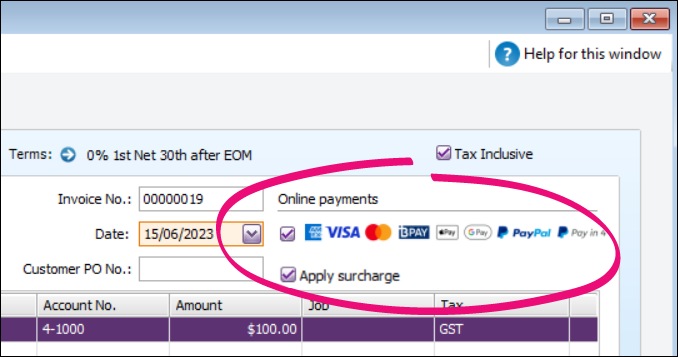 - From invoices using Online Invoice Payments emailed from AccountRight, (this feature isn't yet available for those sent via Microsoft Outlook)