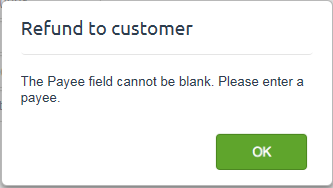 Why am I getting the message "The Payee field must not be blank" when applying a refund?
