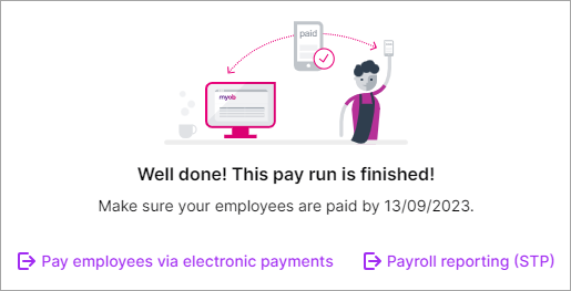 - If you enter a future date, the pay will still be recorded in MYOB on the day you complete the pay run.