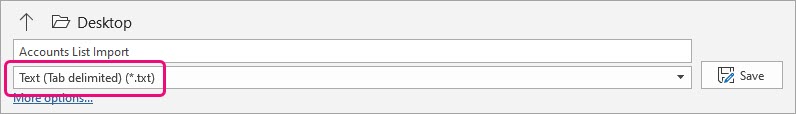 When you're done, save the template as a text (.TXT) file. If you like, you can give the file a meaningful name, such as "Accounts List Import" or similar.