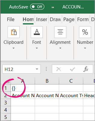 When looking at the file in Excel, note the following:the first cell (A1) contains parentheses (brackets) - these need to remain, as they indicate that the import file is for MYOB.