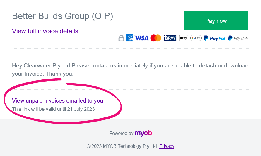 - By clicking the link View unpaid invoices emailed to you at the bottom of any invoice emailed to them.