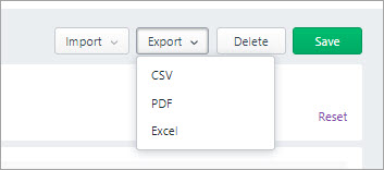 - Click Export and choose CSV. The budget is downloaded as a CSV file to your computer.
