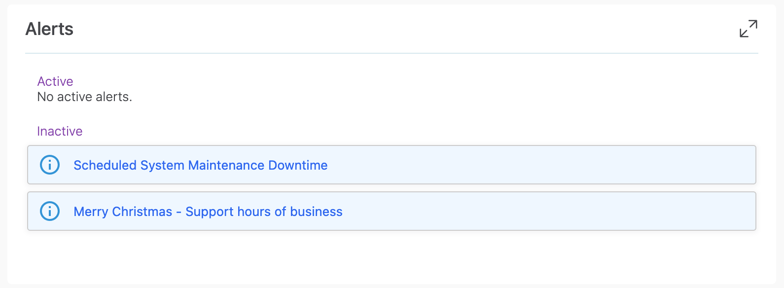 Alerts are managed by the MYOB team and will look similar to the following: