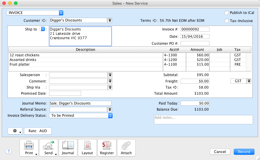 AccountEdge can also automatically adjust your GST liability when discounts are claimed. You can take advantage of this by simply updating your customer and supplier terms.