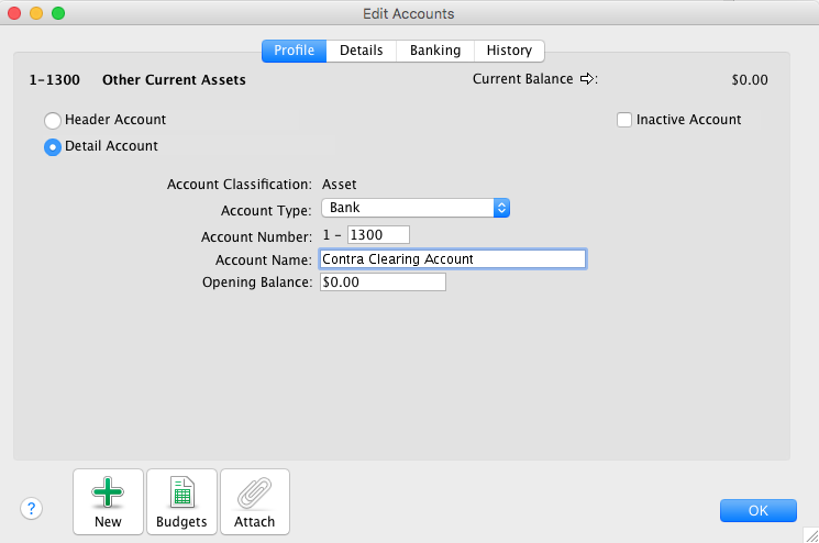 - Name the account Contra Clearing Account.