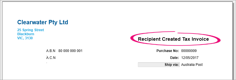 When you print the bill, by default Recipient Created Tax Invoice will be displayed.