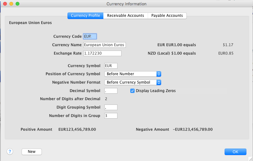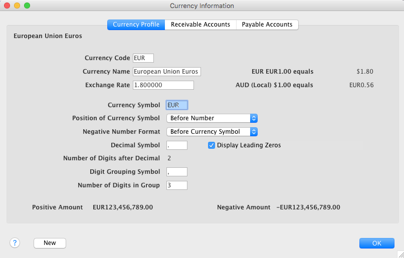 Some days later, you review your Currency List and since you had the latest exchange rate to hand, you update the EUR currency exchange rate to 1.8.