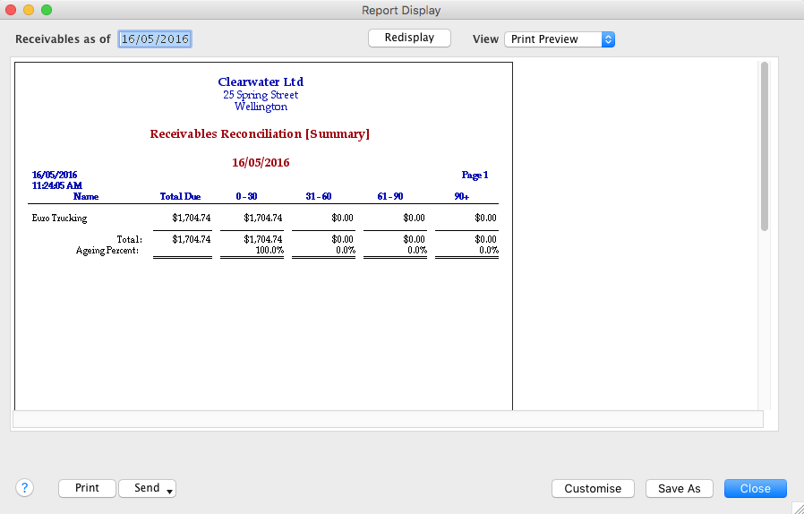 When you look at your balance sheet, you find that if you add the balance of the European Customer Trade Debtors account and its corresponding exchange account, the sum does not equal $1800.00; they still show a total outstanding of $1704.74 as shown in the image earlier in this support note.