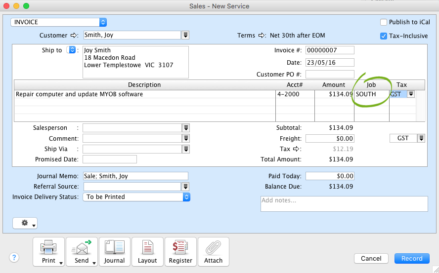 • The expense of inventoried items is realised when the items are sold, and not when purchased, so applying a Job to an item sale where inventoried items are sold, will allocate both the expense and income of the items to the Job.