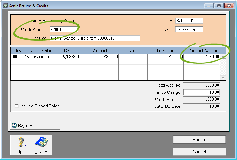 • Enter the credit amount in the Amount Applied field. This should match the Credit Amount.