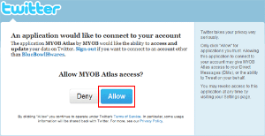 Twitter account Enter your Twitter login details in the login window, and then click Allow in the Twitter window.
