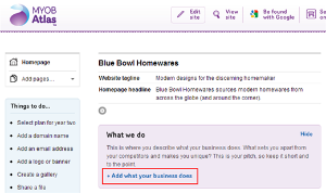 If you haven't published your business information, click the Add what your business does link in the What we do section.