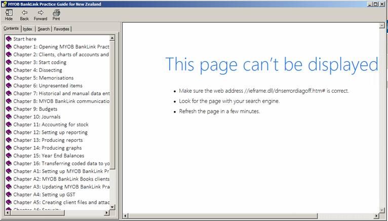 When pressing F1 to view the BankLink Practice help, the error This page can't be displayed may appear.