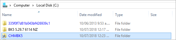 - Navigate to the local folder path you specified at step 5, eg. Local Disk (C:) and double-click to open the CHMBK5 folder.