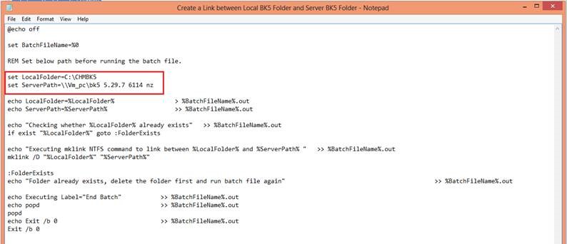 - Right-click the file named Create a Link between Local BK5 Folder and Server BK5 Folder.bat and choose Edit. The file opens in Notapad.