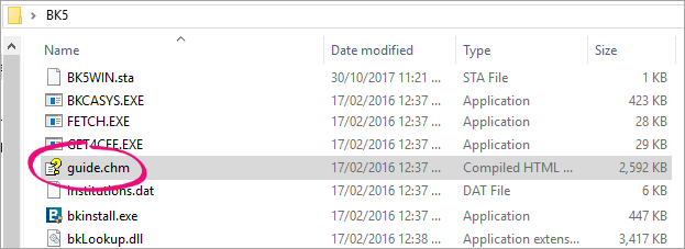 | Solution 1 | Copy the help file (guide.chm) from your BK5 folder to your Desktop. This allows you to access the BankLink help from your Desktop instead of pressing F1. See Solution 1 below. | It's the quickest and easiest solution, but it changes the way you'll access the help (you'll access it from the Desktop instead of pressing F1). |