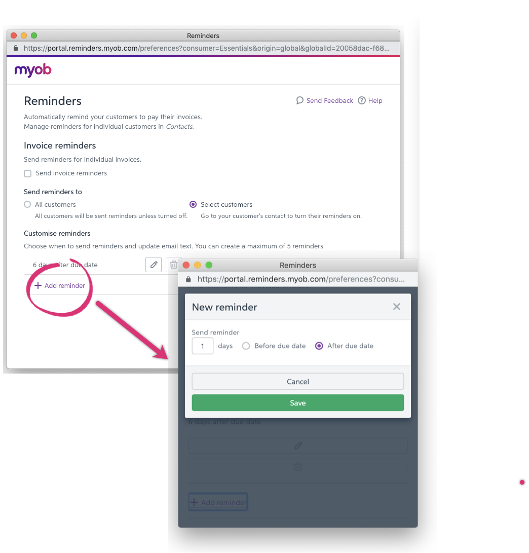 We're keen to hear from you about how we can improve invoice reminders. Just click the feedback link in the Reminders window and tell us what you think.