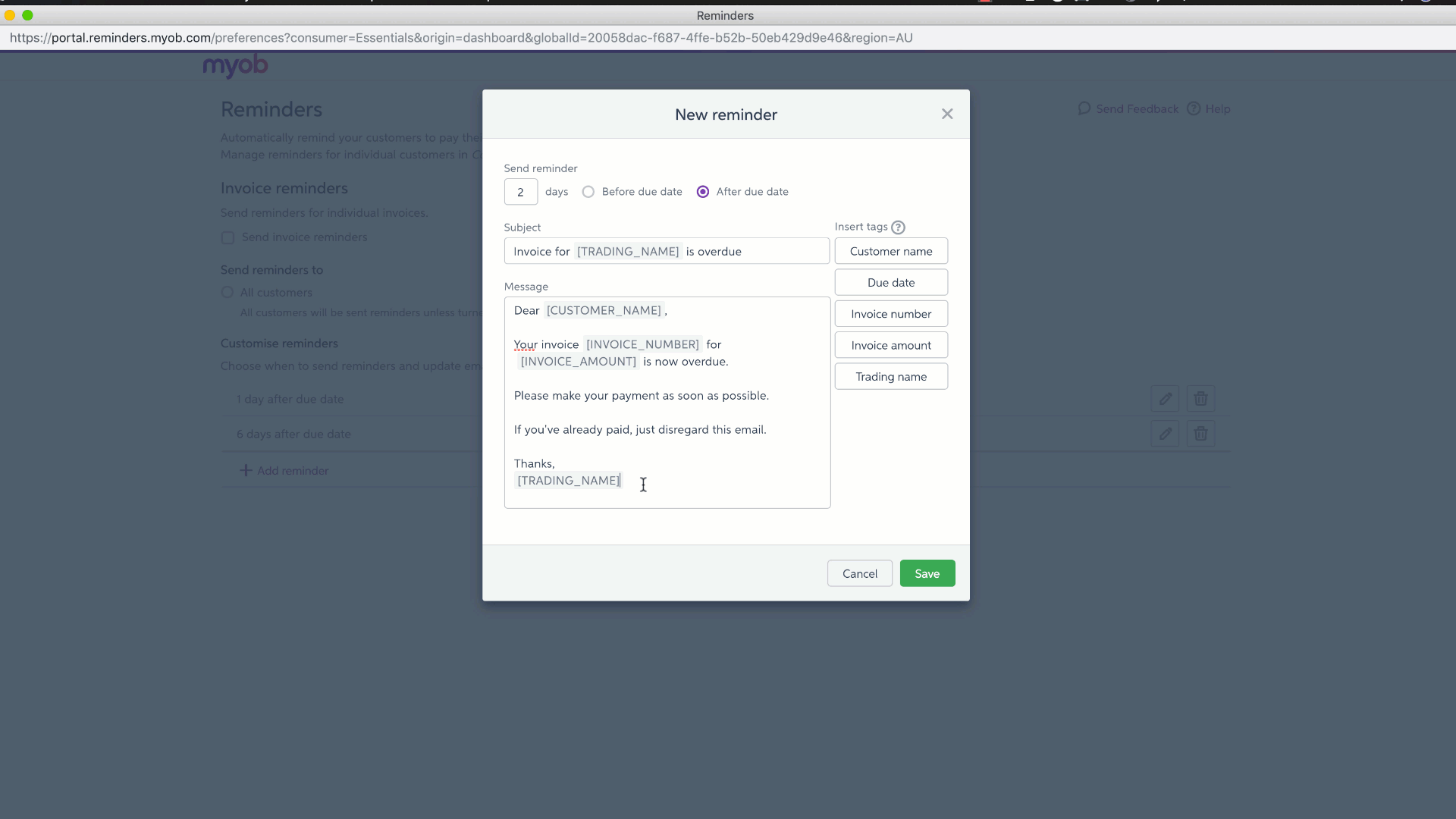 Customise your reminder message and when reminders are sent