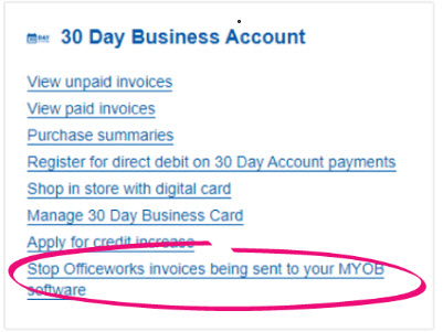 - When you are logged in click Stop Officeworks invoices being sent to your MYOB software.