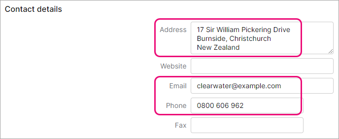 Check your business contact details